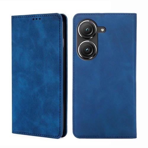 Funda Flip Horizontal de Cuero Magnética para Asus Zenfone 9 Skin Feel (Azul)