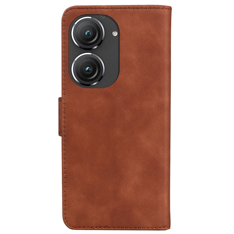 Funda de Cuero Flip para Asus Zenfone 9 Skin Feel Pure Color (Marrón)