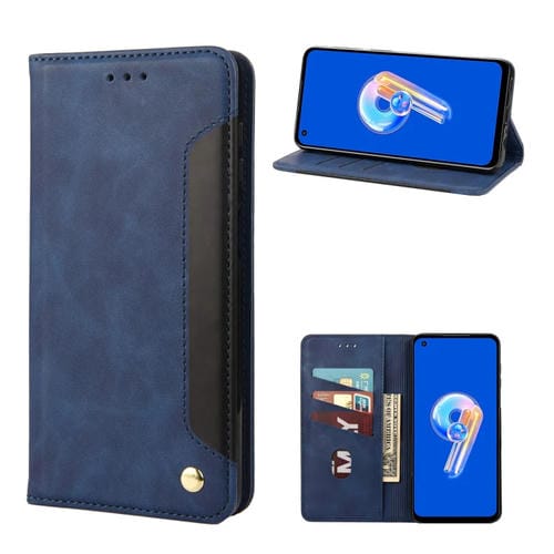 Funda para Asus Zenfone 9 Skin Feel Splicing Leather Phone Case (Azul)