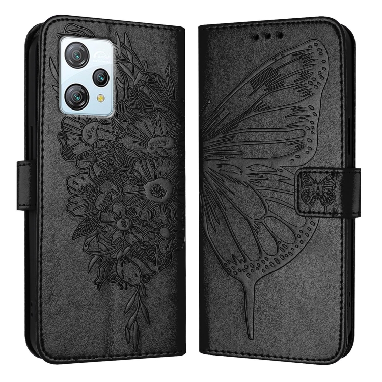 Funda de Cuero para BlackView A53 con Mariposa en Relieve (Negro)