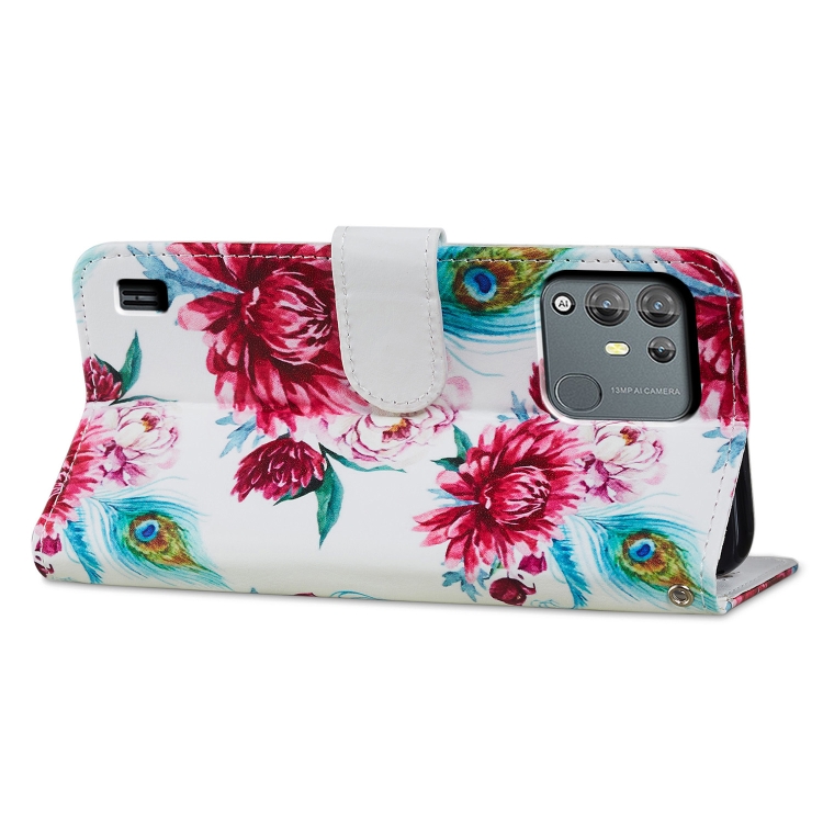 Funda de Cuero para BlackView A55 Pro con Tapa Horizontal y Patrón Flor de Pavo Real