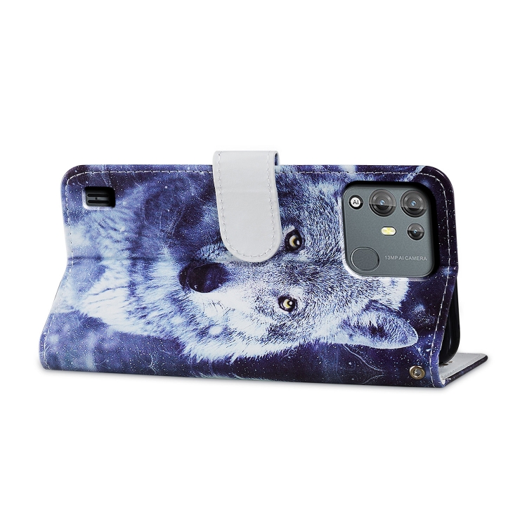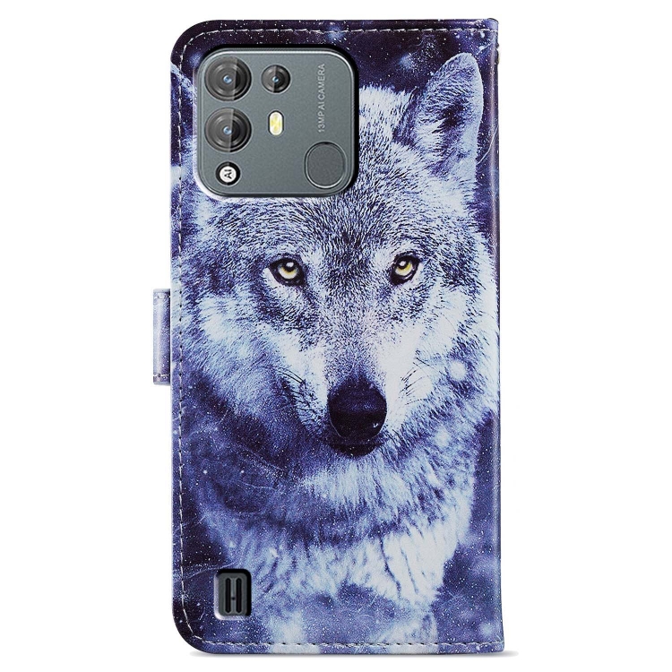 Funda de Cuero para BlackView A55 Pro con Tapa Horizontal y Patrón Lobo Blanco