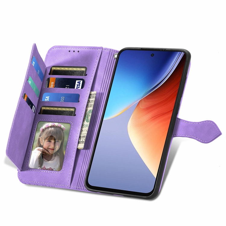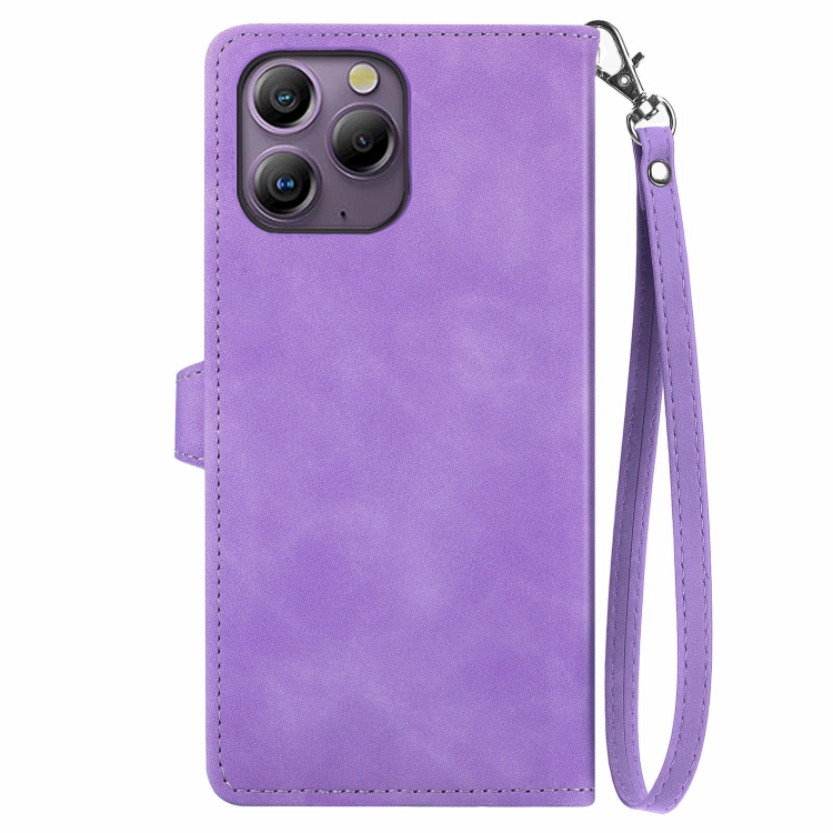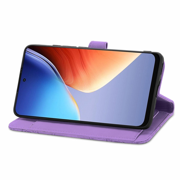 Funda de Cuero para BlackView A96 con Cremallera y Flores en Relieve (Púrpura)