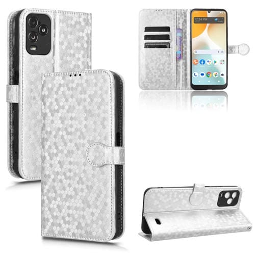 Funda de Cuero para Blu View 5 Pro con Textura Honeycomb Dot (Plata)