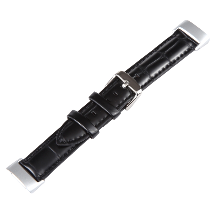 For Fitbit Charge 5 18mm Bamboo Joint Texture Genuine Leather Watch Band(Black Bamboo)