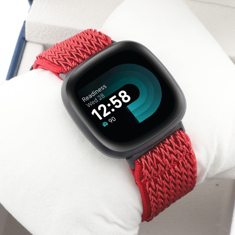 Correa Nylon Universal para Fitbit Versa 4 y Sense 2 Wave (Rojo)