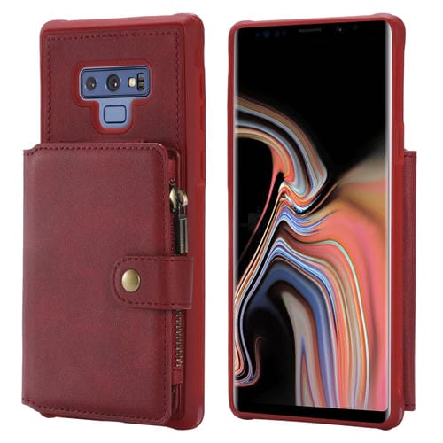 Estuche Protector para Galaxy Note9 con Cremallera Ranuras para Tarjetas Soporte y Función Billetera (Rojo)