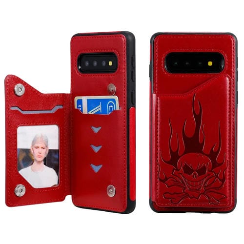 Estuche Protector para Galaxy S10 Skull Head a Prueba de Golpes con Soporte y Ranuras para Tarjetas (Rojo)