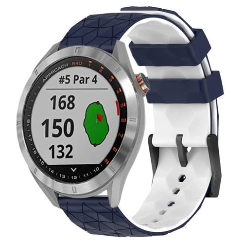 Banda de Reloj Silicona para Garmin Approach S40 20mm (Azul Medianoche + Blanco)