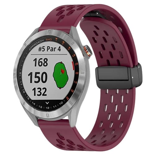 Correa de Reloj para Garmin Approach S40 de Silicona con Cierre Magnético Plegable de 20mm (Rojo Vino)