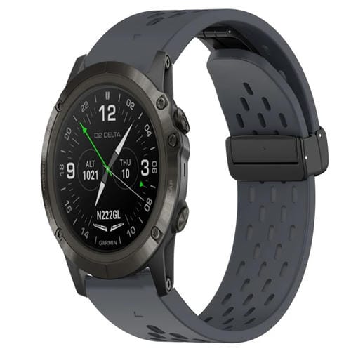 Correa de Silicona para Garmin D2 Delta Px con Orificio y Hebilla Plegable de 26mm (Gris Oscuro)