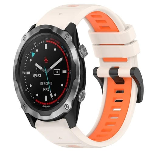 Correa silicona 26mm Garmin Descent Mk 2I deportiva bicolor (Starlight + Orange)