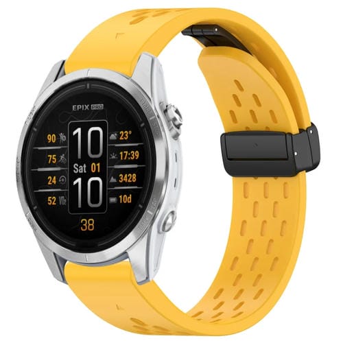 Correa de Silicona para Garmin Epix Pro 42mm 20mm con Hebilla Plegable Magnética (Amarillo)