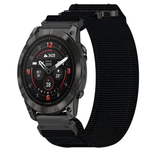 Correa de Reloj para Garmin Epix Pro 47mm 22mm Nailon con Cierre de Gancho y Bucle (Negro)