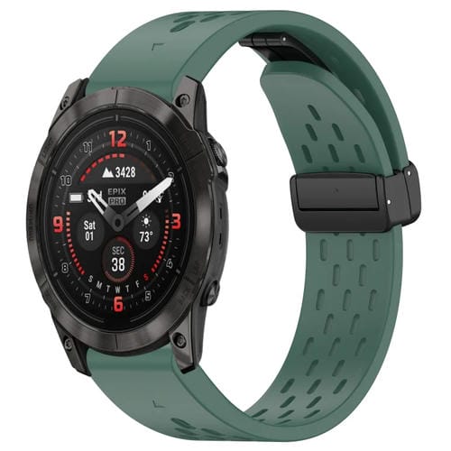 Correa de Silicona para Garmin Epix Pro con Hebilla Plegable Magnética y Orificios 51mm (Verde Oscuro)
