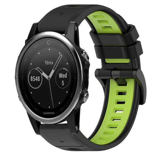 Correa de Silicona 22mm para Garmin Fenix 5 Sports Two-Color (Negro + Verde Lima)
