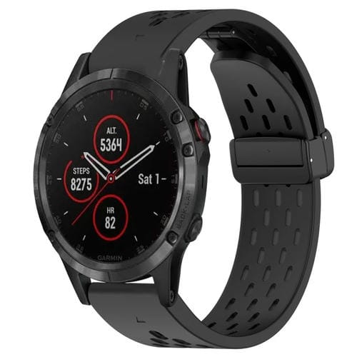 Correa de Reloj para Garmin Fenix 5 de Silicona con Orificio y Hebilla Plegable 22mm (Negro)