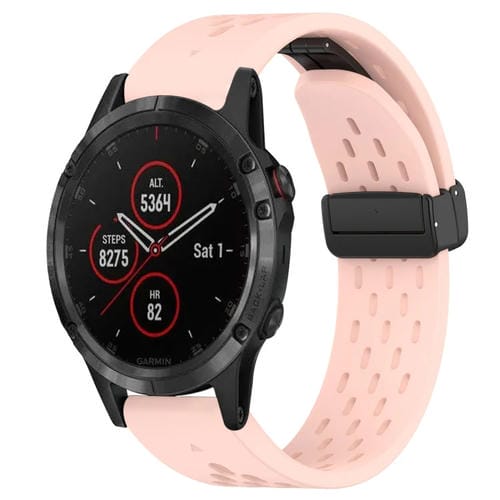 Correa de Reloj para Garmin Fenix 5 Silicona 22mm con Orificio y Hebilla Plegable (Rosa)