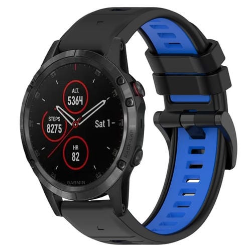Correa silicona deportiva 22mm Garmin Fenix 5 Plus (Negro + Azul)