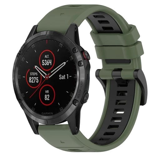 Correa de Silicona 22mm para Garmin Fenix 5 Plus Sports Dos Colores (Verde Oliva + Negro)
