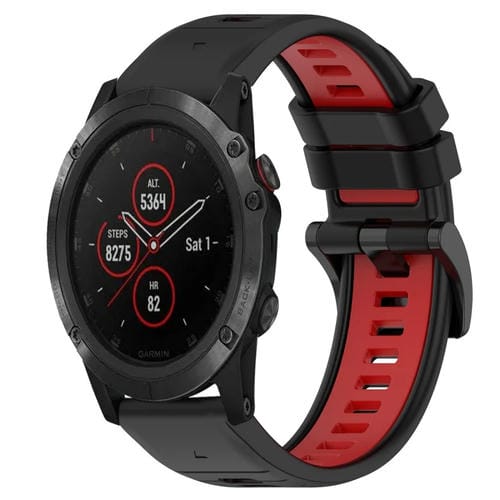 Correa de silicona deportiva para Garmin Fenix 5X Plus 26mm (Negro + Rojo)