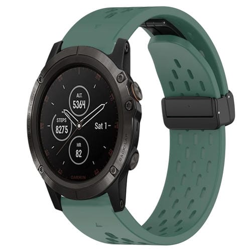 Correa de Silicona para Garmin Fenix 5X Plus con Orificio y Hebilla Plegable de 26mm (Verde Oscuro)