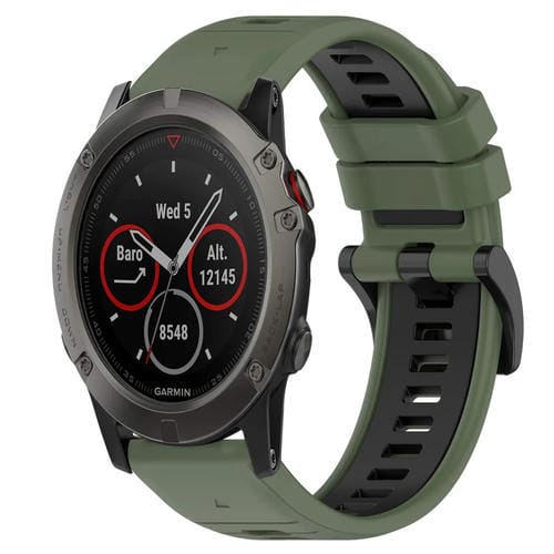 Correa de Silicona para Garmin Fenix 5X Sapphire 26mm Sports (Verde Oliva + Negro)