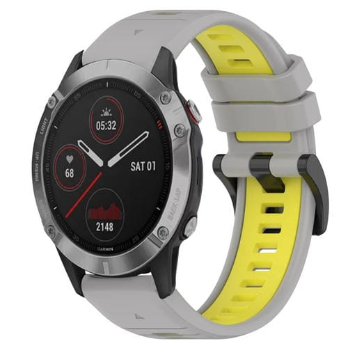 Correa para Garmin Fenix 6 GPS 22mm Silicona Deportiva Bicolor (Gris + Amarillo)