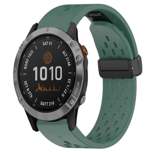Correa de Silicona para Garmin Fenix 7 con Orificio y Hebilla Plegable 22mm (Verde Oscuro)