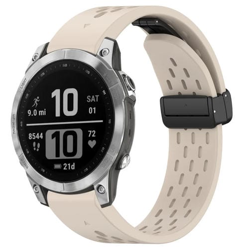 Correa de Silicona para Garmin Fenix 7 y Fenix 7 Pro con Hebilla Plegable Magnética y Orificios de 22mm (Luz de Estrella)