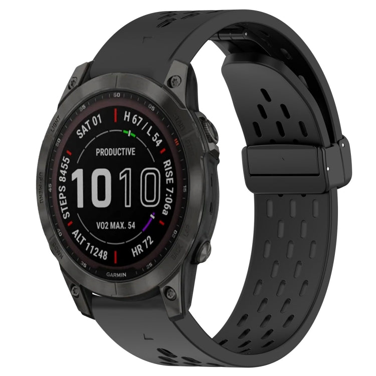 Correa de Reloj Garmin Fenix 7 Sapphire Solar 22mm silicona con orificio y hebilla plegable (Negro)