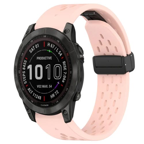Correa de Silicona para Garmin Fenix 7 Sapphire Solar 22mm con Orificio para Hebilla Plegable (Rosa)