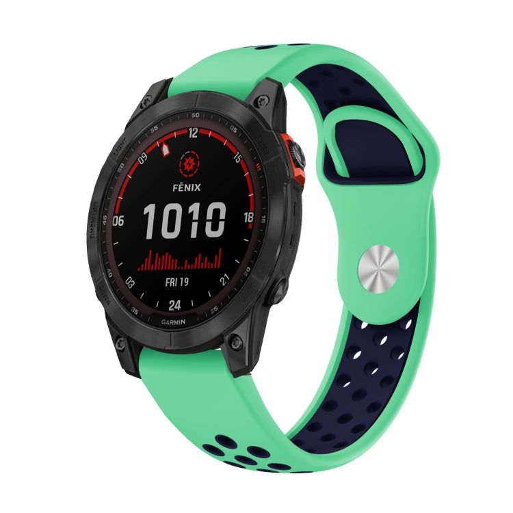 Correa de Reloj Garmin Fenix 7 Solar 22mm Silicona Deportiva Transpirable (Verde Menta + Azul Medianoche)