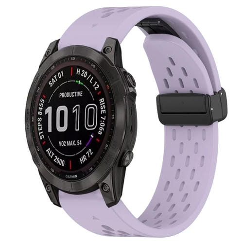 Correa de Reloj Silicona Garmin Fenix 7S Sapphire Solar 20mm con Orificio para Hebilla Plegable (Púrpura)