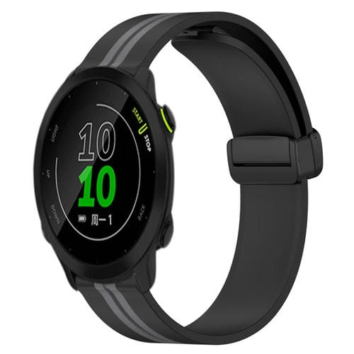 Correa de Reloj para Garmin Forerunner 158 20mm Silicona con Cierre Magnético Plegable (Negro + Gris)