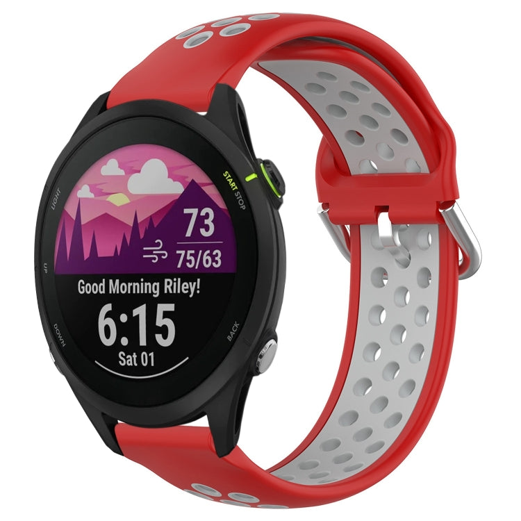 Correa de Reloj Garmin Forerunner 255 22mm Silicona Deportiva Transpirable Perforada (Rojo + Gris)