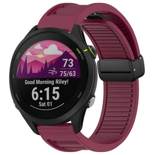 Correa de Reloj para Garmin Forerunner 255 Silicona Hebilla Magnética Plegable 22mm (Rojo Vino)