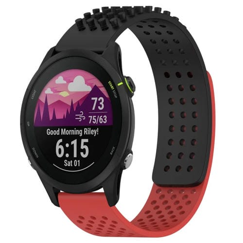 Correa de Silicona para Garmin Forerunner 255 Music con Puntos 3D Transpirables y Orificios de 22mm (Negro + Rojo)