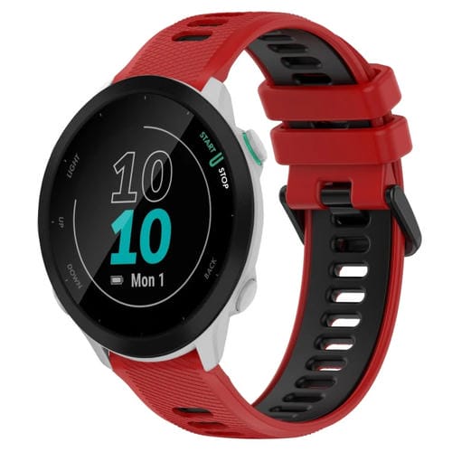 Correa para Garmin Forerunner 55 20mm Silicona Deportiva Bicolor (Rojo + Negro)