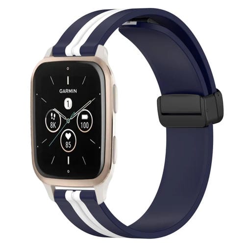 Correa de Reloj para Garmin Forerunner Sq2 Music 20mm Silicona con Cierre Magnético Plegable (Azul Medianoche + Blanco)
