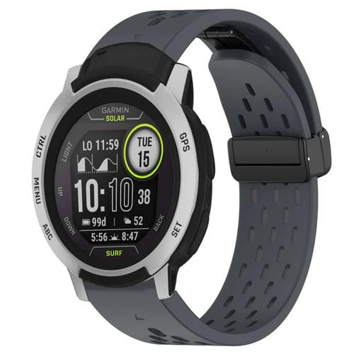 Correa de Silicona para Garmin Instinct con Orificio y Hebilla Plegable 22mm (Gris Oscuro)