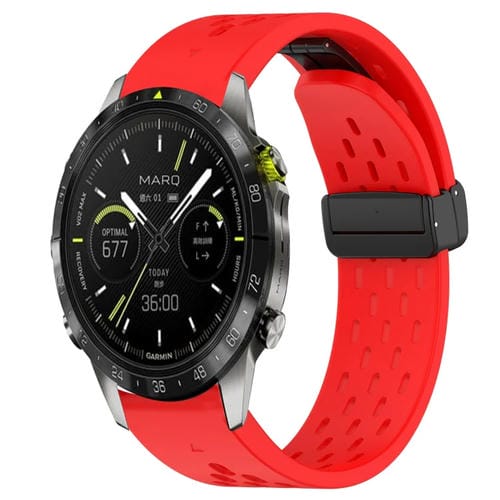 Correa de Silicona para Garmin Marq Athlete Gen 2 con Orificio y Hebilla Plegable 22mm (Rojo)