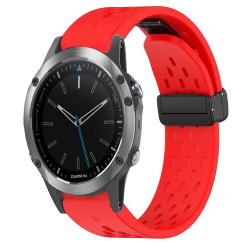 Correa de Reloj Silicona Garmin Quatix 5 Zafiro Orificio Hebilla Plegable 22mm (Rojo)