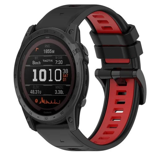 Correa Deportiva Silicona Garmin Tactix 7 26mm Dos Colores (Negro + Rojo)