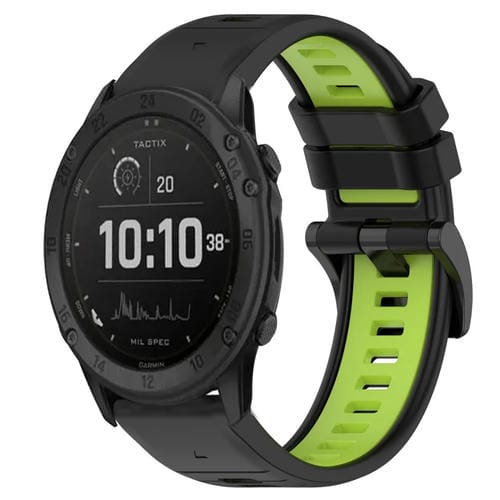 Correa Silicona 26mm Para Garmin Tactix Delta Sports Bicolor (Negro + Verde Lima)