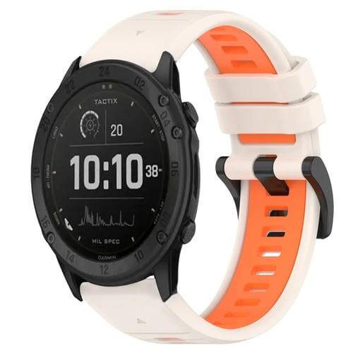 Correa de Silicona Para Garmin Tactix Delta 26mm Sports Dos Colores (Starlight + Orange)