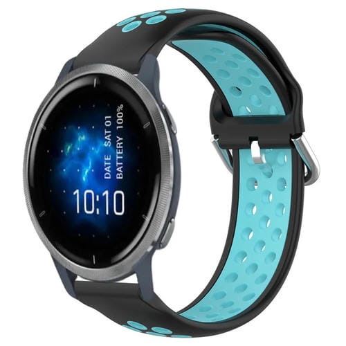 Correa de Reloj de Silicona Deportiva para Garmin Venu 2 22mm Transpirable Perforada (Negro + Azul)