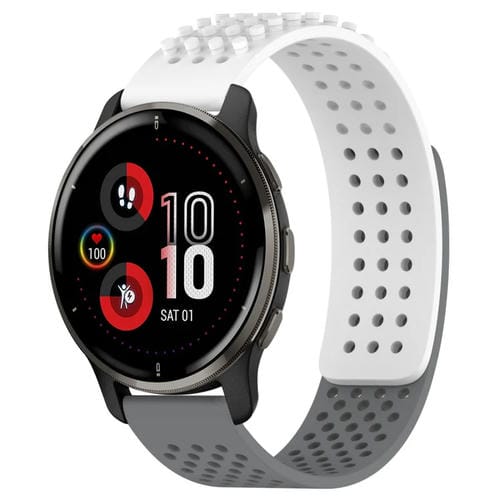 Correa de Reloj para Garmin Venu 2 Plus silicona puntos 3D transpirable 20mm (Blanco + Gris)