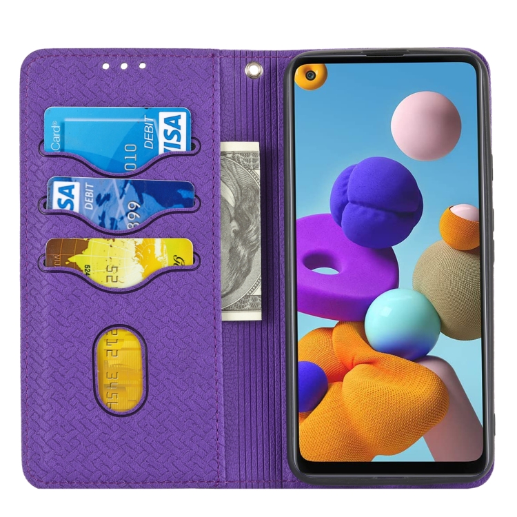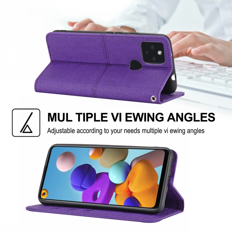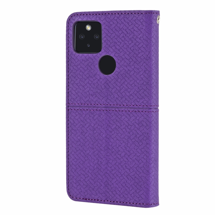 Para Google Pixel 5A 5G Textura tejida Costura Magnética Horizontal Flip PU Funda de cuero con soporte y tragamonedas de tarjetas y billetera y cordón (púrpura)
