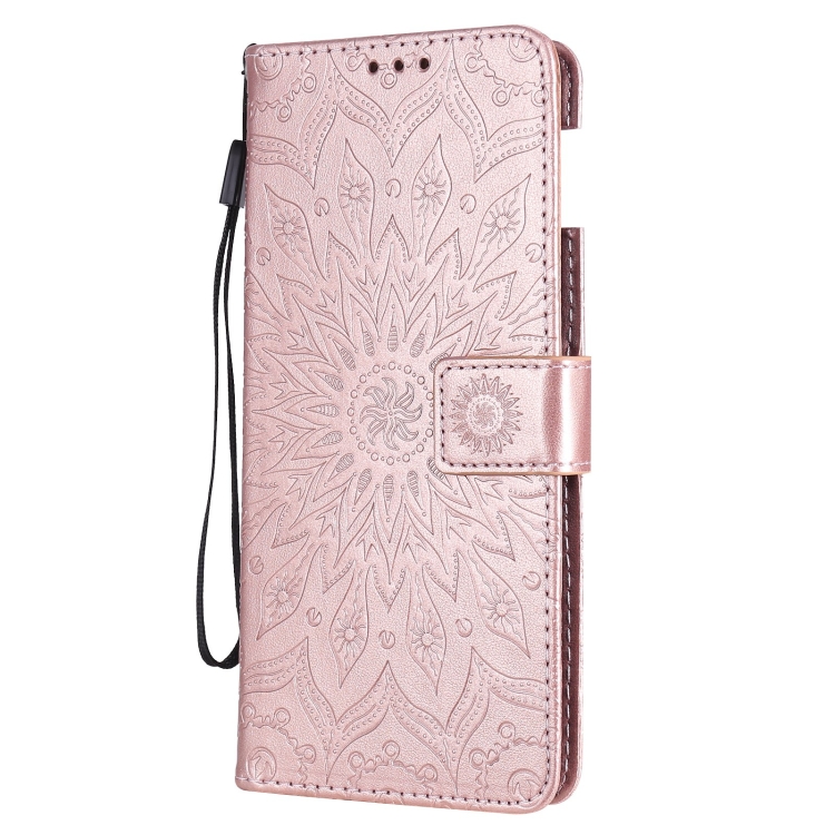 Para Google Pixel 6 Sun Pattern Horizontal Flip Funda de cuero con ranura para tarjeta y soporte y cartera y cordón (oro rosa)